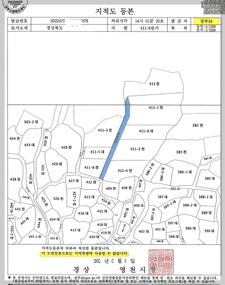 그리고 제가 공인중개사 시험공부 당시 <지적공부에 관한 샘플이 같이 있으면 도움이 많이 될 텐데...>라는 생각을 했었던 적이 있어서 부동산 경매 물건 중에 해당 지적 서류가 있어서 몇 가지 같이 올려봅니다.