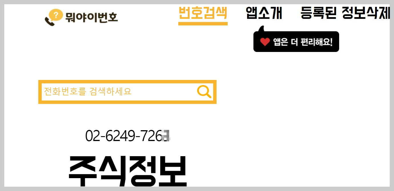 - 이 사이트는 위의 주식정보로 걸려온 전화를 검색해 보니 결과가 한눈에 보기 좋게 나오고 앱도 있다고 합니다.