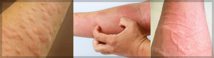 ●피부가 갑자기 붉게 부어오르면서 가렵고 따가운 증상이 나타나는데 주로 몸통 부위나 팔, 다리 등 전신에 걸쳐 1~2㎜