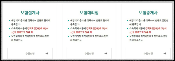 - 대상자: 간당보험등록교육 / 간단 보험 보수교육/ 간단 보험 경력자 교육