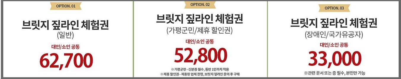 2. 가평짚라인(브릿지 짚라인) 입장료 및 이용 금액