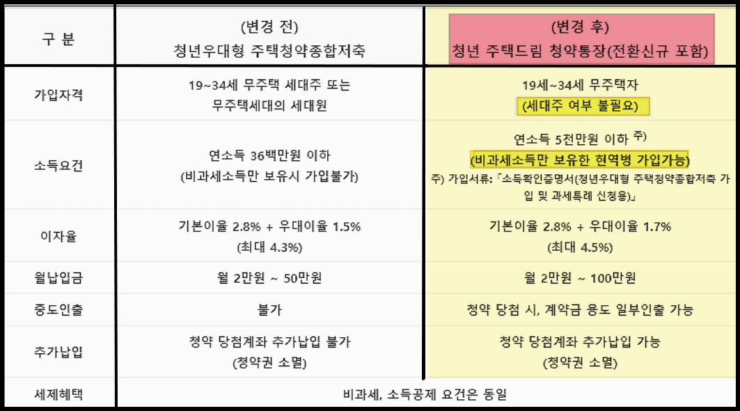| 구분 | 주택청약종합저축 | 청년주택드림청약저출 |