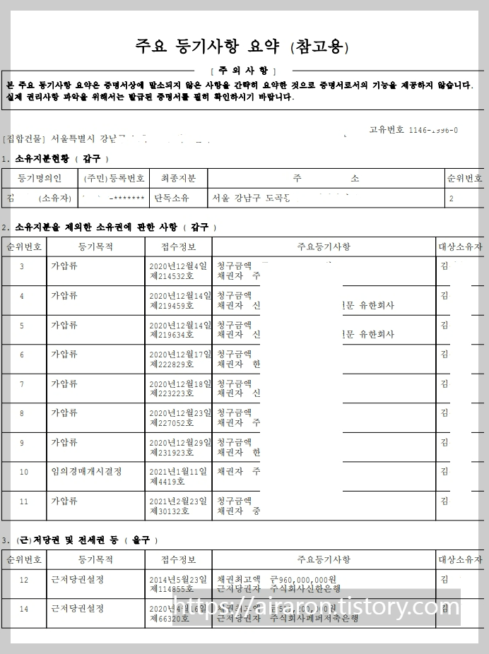 ●이제 두번째 모의 부동산 매물 셀프 권리 분석 시작!! (두번째라 쬐금 덜 떨리네요.)
