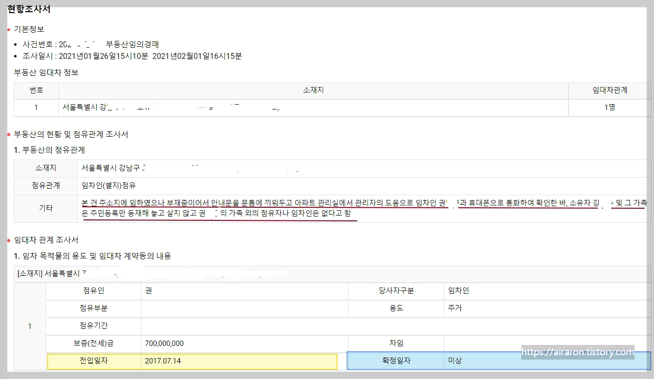 | 넷째)세번째는 다음은 점유자에 대한 분석입니다. 이 분석에 필요한 서류가 현황조사서와 전입세대열람하는 것입니다. |