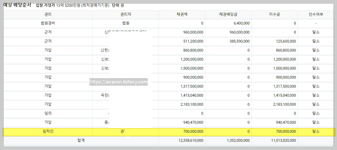 -배당신청시 임대차 계약서랑 주민등록등본등의 서류를 제출해야 하므로 임대보증금 금액을 알 수 있었다.