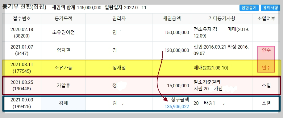그래서 부동산 경매 권리분석 중에 가등기가 말소기준권리보다 앞서있으면 특히 조심해서 낙찰해야 하고 세심하고 권리 부석을 해야 합니다.