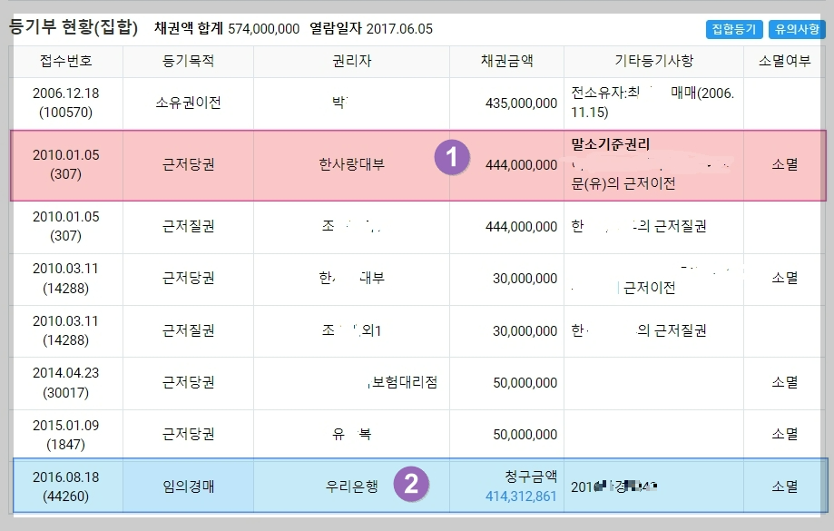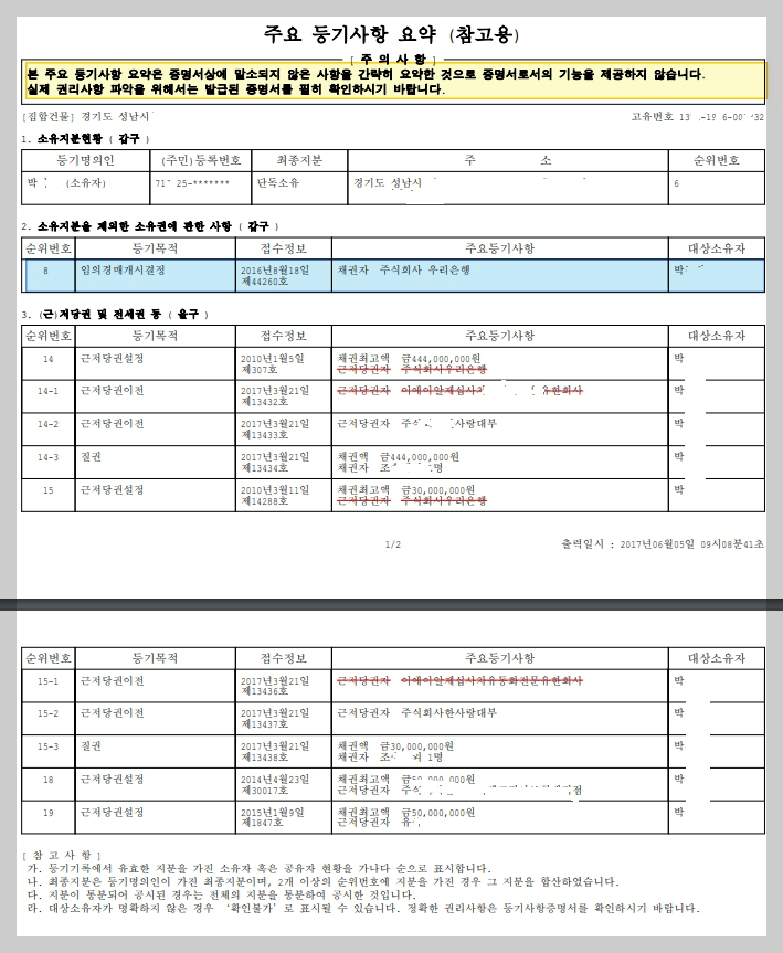 (하지만 이 부분은 보기 좋게 요약 열람해 놓은 것이기 때문에 등기부등본 내용을 세세하게 확인해 봐야 한다.)