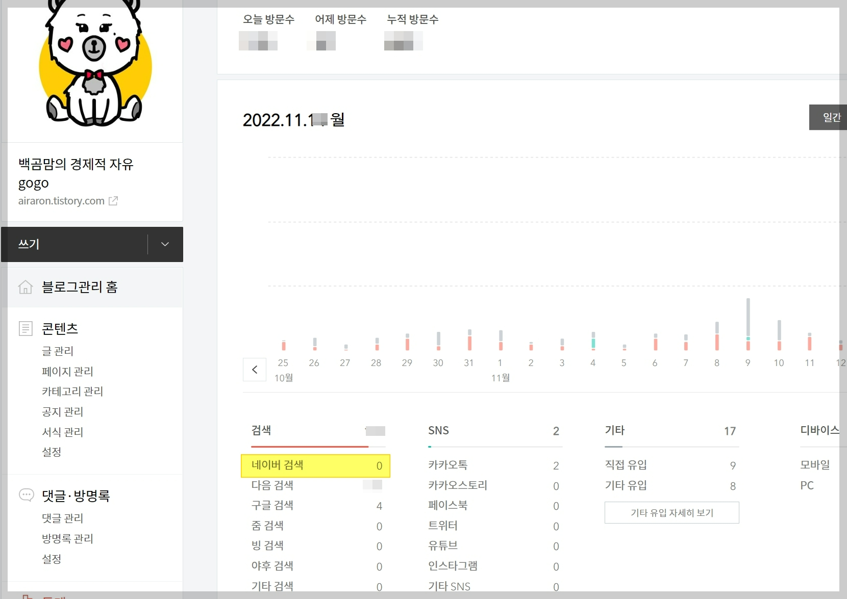 ●저의 블로그 네이버에 유입은 제목처럼 "0"입니다.