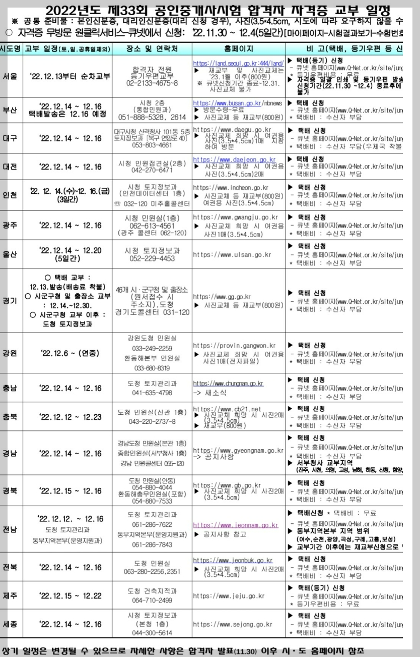 2022.11.25 - [부동산/공인중개사 시험 관련( 경험자로써)] - 공인중개사 시험 합격 후 실무교육은 어떻게? (공인중개사법 시험 교육내용 포함)
