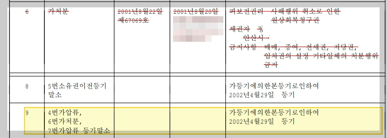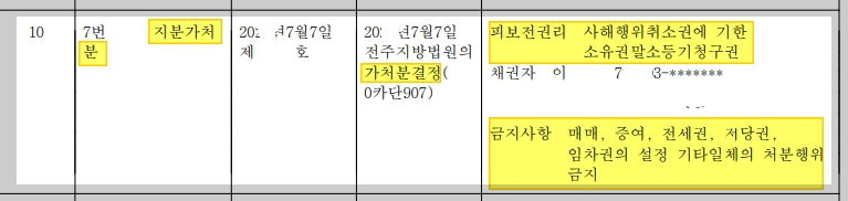 | 가처분등기: 금전채권 이외 가압류등기: 금전채권 |